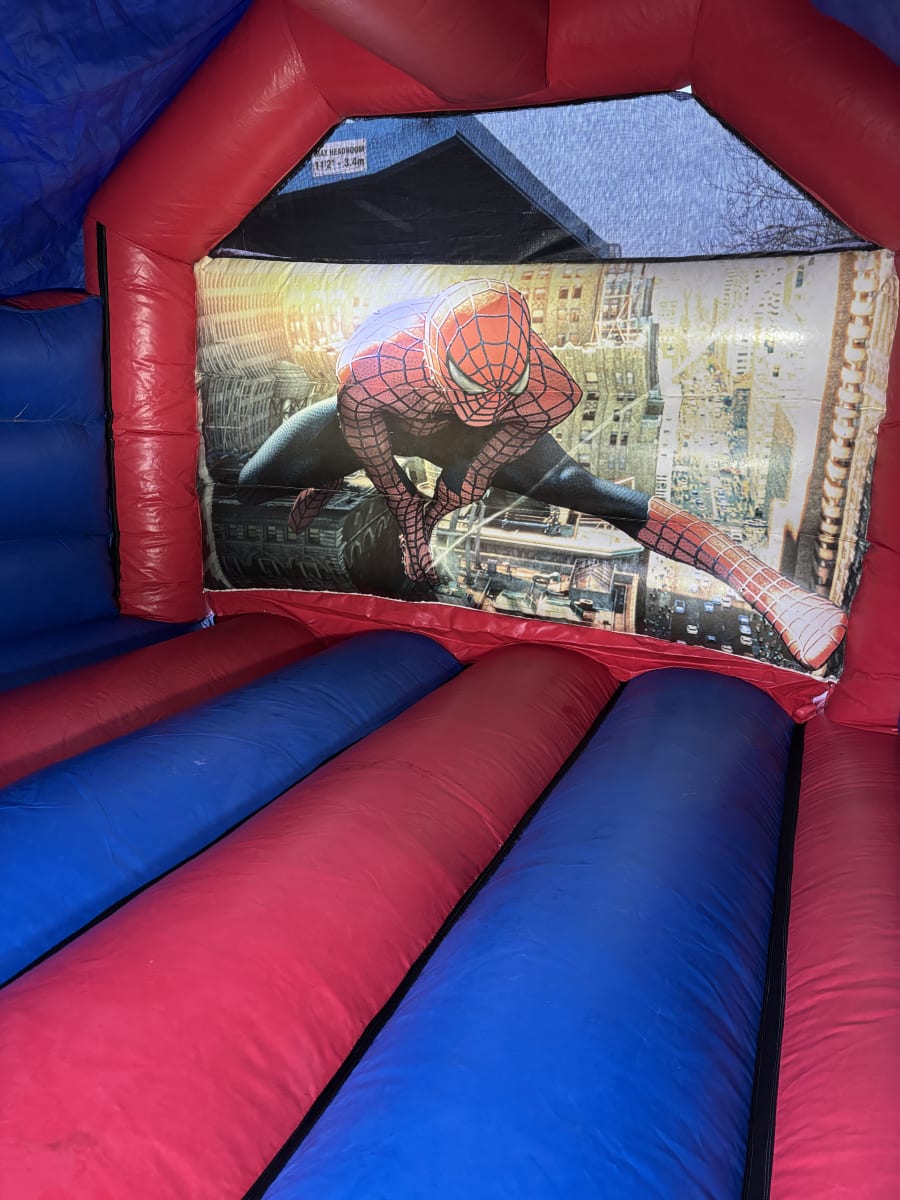 Reserve the Spider-Man Slide Combo Bouncy Castle today. Fast quotes, secure booking and friendly support. Contact PK bouncy castle hire wirral for a competitive price and reliable service.