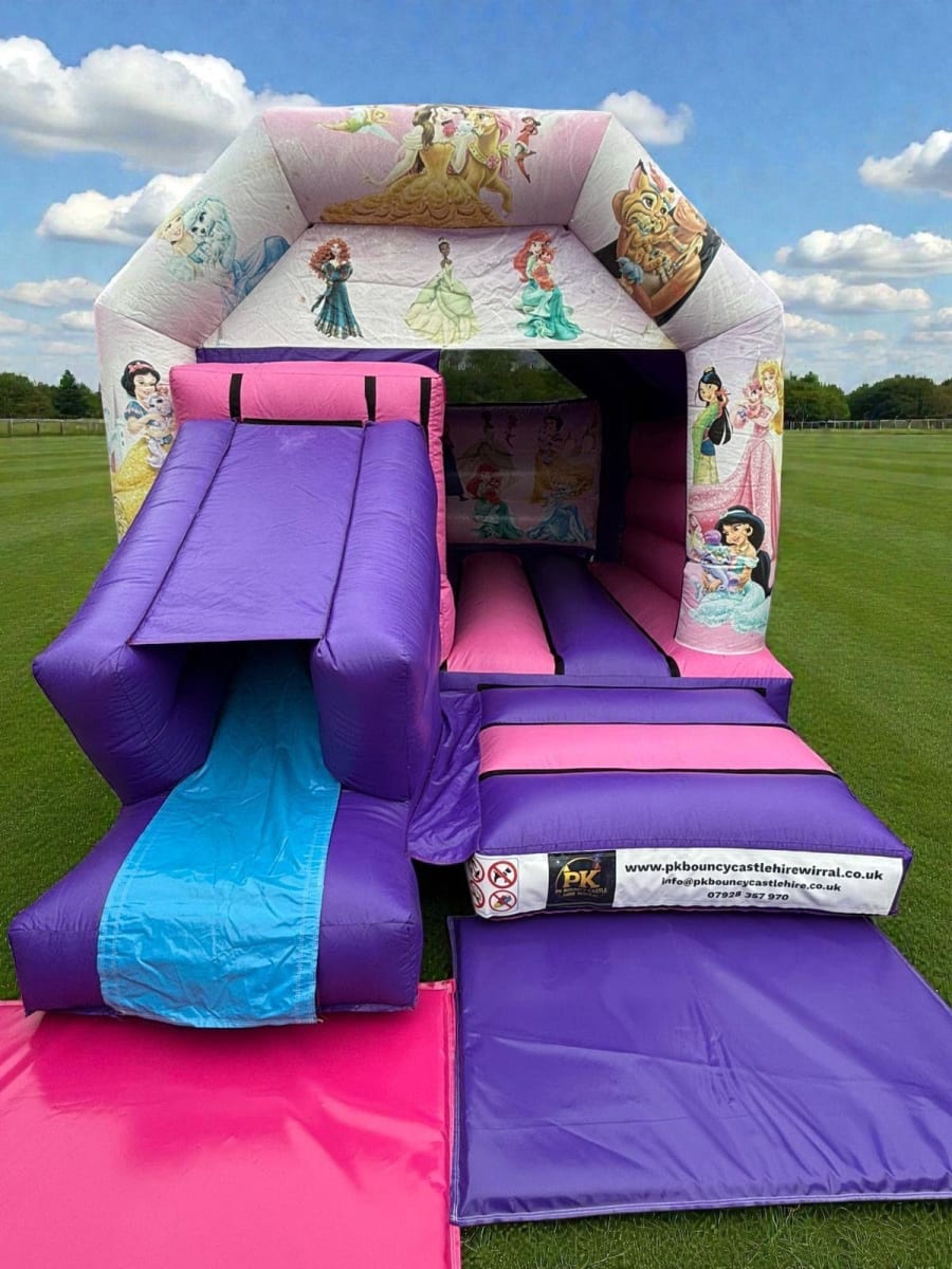 PK Bouncy Castle Hire Wirral 12 ft x 18 ft Disney Princess Slide Combo Bouncy Castle in Barnston Bebington Beechwood Bidston Birkenhead Brimstage Bromborough Caldy Clatterbridge Claughton Eastham Egremont Ford Frankby Gayton Grange Greasby Heswall Hoylake Irby Landican Larton Leasowe Liscard Meols Moreton New Brighton New Ferry Newton Noctorum Oxton Pensby Port Sunlight Poulton Prenton Raby Mere Raby Rock Ferry Saughall Massie Seacombe Spital Storeton Thingwall Thornton Hough Thurstaston Tranmere Upton Wallasey Wallasey Village West Kirby Woodchurch Woodside